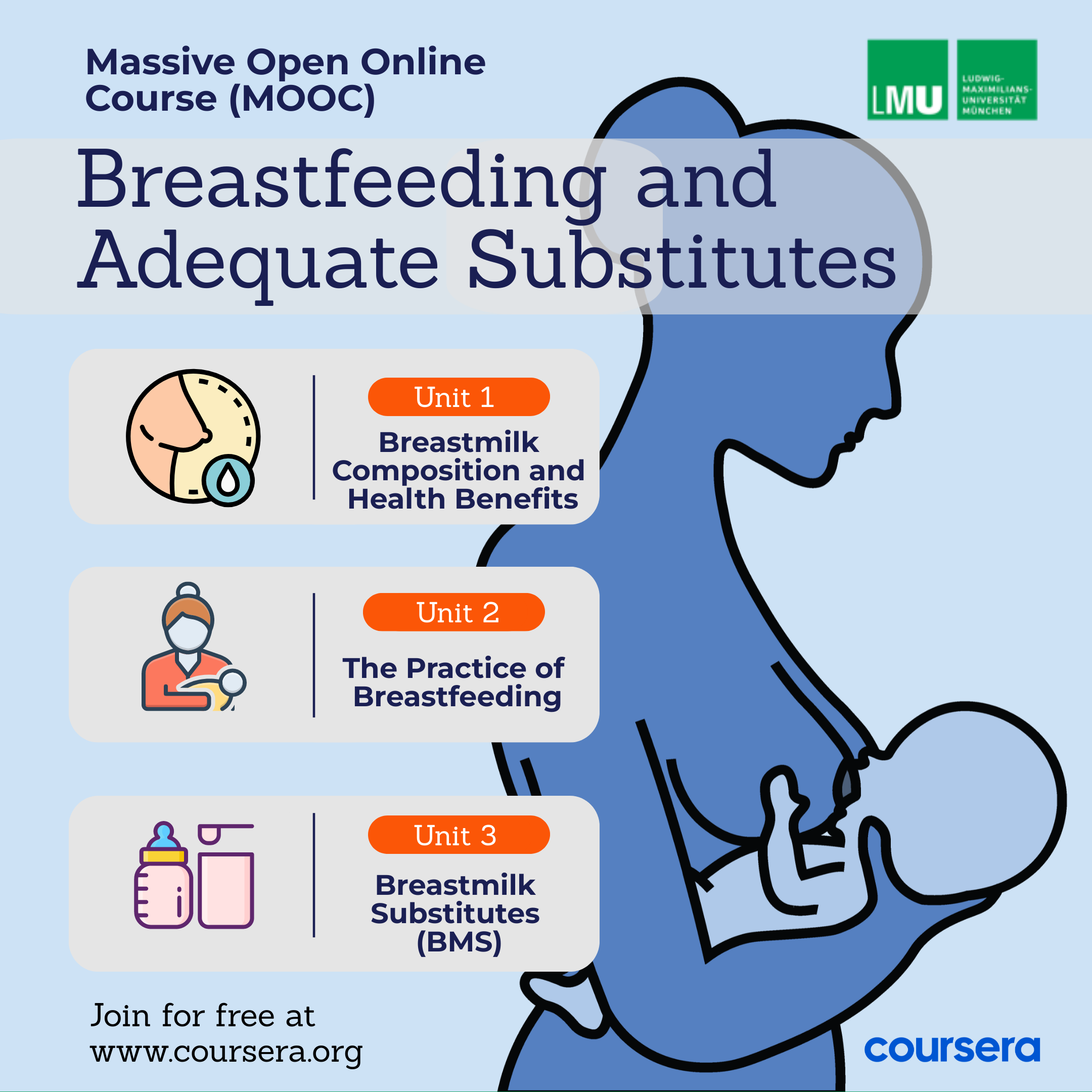 Our Massive Open Online Course (MOOC) “Breastfeeding and Adequate Substitutes” invites you to navigate the world of infant nutrition during the first six months of life. Highly qualified specialists in the field will show you the latest research results and international recommendations through three study units. These will encompass the unique components and health benefits of human milk, the relevant practical aspects of breastfeeding and, finally, how best to provide adequate substitutes for breastmilk when these may be provided. Ensuring adequate nutrition is essential for infants to reach their full potential, whereas nutritional imbalances and deficiencies may result in detrimental and often irreversible adverse health consequences. This course is primarily intended for healthcare professionals who in their daily practice are in contact with infants and their parents. However, students of life sciences, educators, trainers, researchers and anyone else interested in the topic would also find it beneficial for them.